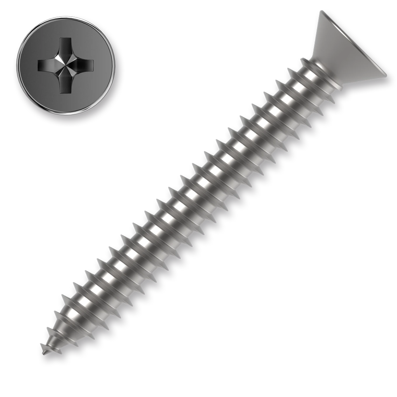 Šrouby do plechu se zápustnou hlavou a drážkou Philips DIN 7982C patří do skupiny samořezných šroubů, které si při šroubování sami řežou závit. Používají se k upevnění stavebních dílů jako jsou plechy, případně do měkkých materiálů např. hliník nebo měď. Nejsou vhodné u upevňování pohyblivých součástí.
